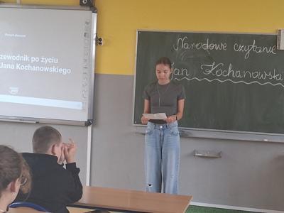 8 września uczniowie klasy VII i VIII wzięli dziś udział w ogólnopolskiej akcji narodowego czytania. Tym razem zmierzyli się z trudną, ale piękną poezją Jana Kochanowskiego. Najpierw uczniowie klasy VIII przeczytali kilka fraszek, pieśni i trenów swoim młodszym kolegom, a później wspólnie uczniowie wspólnie pochylili się nad interpretacją utworów. Akcja ta z pewnością przybliżyła naszym uczniom sylwetkę i twórczość Jana Kochanowskiego - najwybitniejszego poety polskiego renesansu 📜📜📜📚